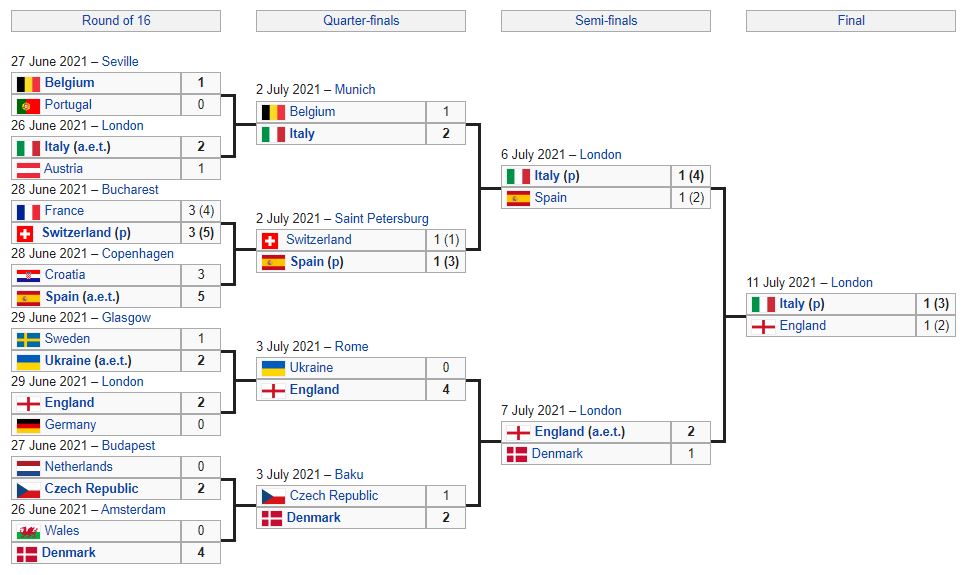 | Euro 2020 Winner | Italy | Ita | Ita | Ita | Ita | Den | Eng |